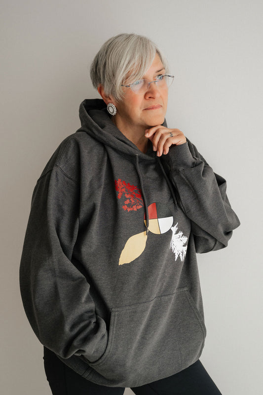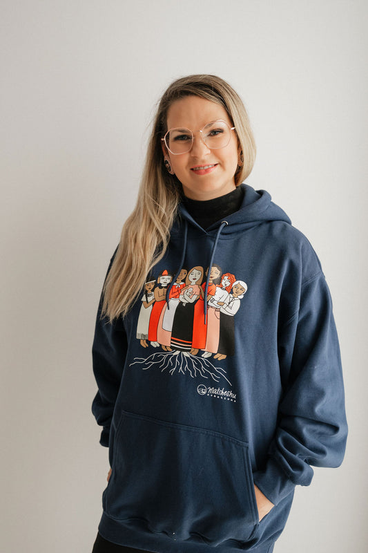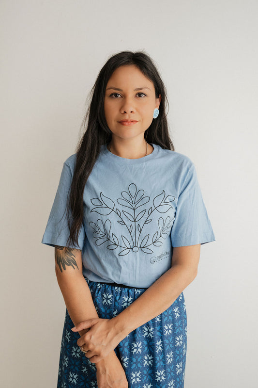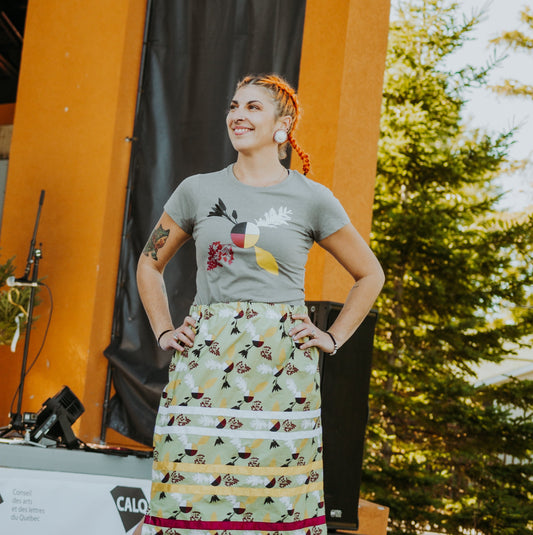 Nos t-shirts et coton ouatés sont les vêtements parfaits pour porter votre culture ou montrez votre soutien aux Premières Nations dans votre quotidien. Chaque design est dessiné avec soin par Raphaëlle Langevin, artiste innue de Mashteuiatsh.