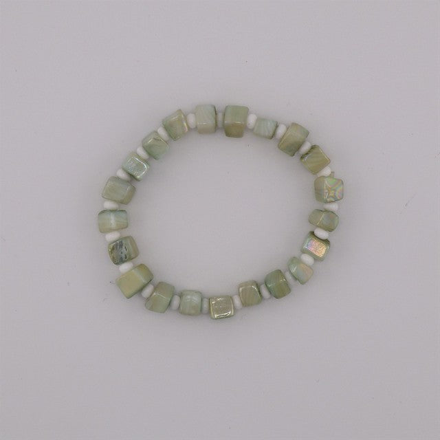Bracelet élastique perles de coquillage vert sauge