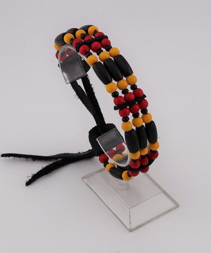 Bracelet en corne 3 rangs rouge, jaune, noir