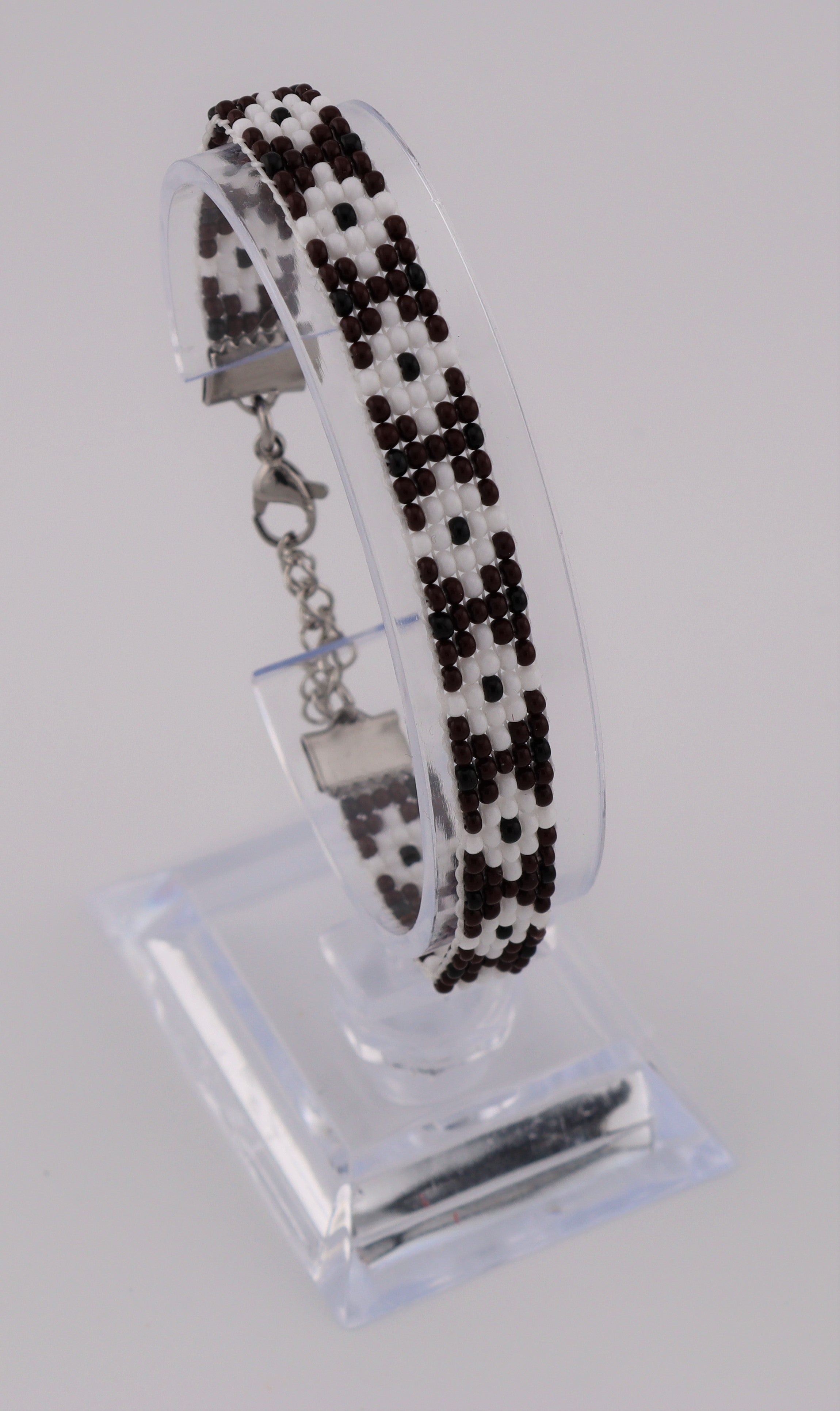 Bracelet en perles de verre tissé sur métier à perler. Modèle léger avec attache métallique ajustable. Idéal pour les poignets petit à moyen