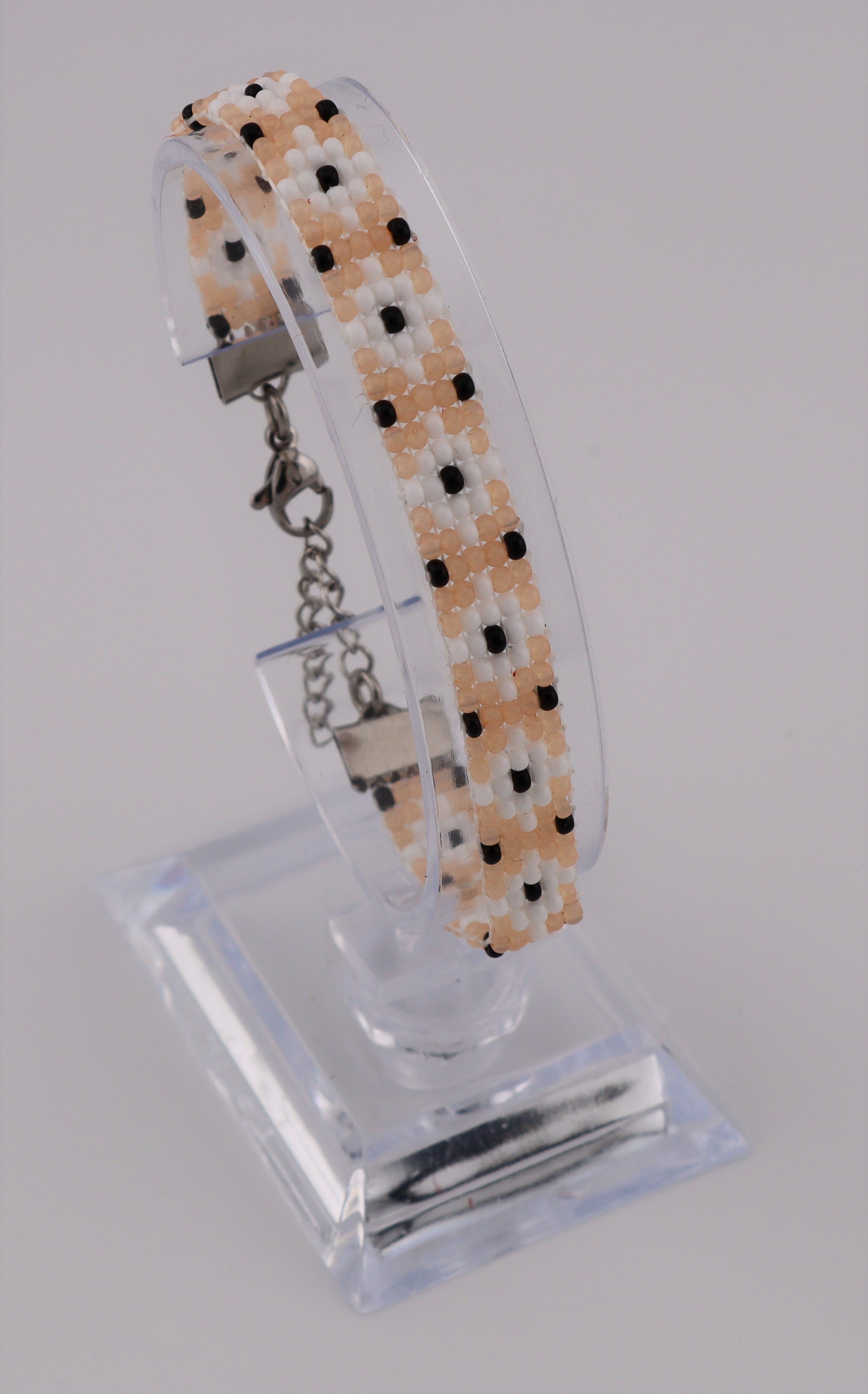 Bracelet en perles de verre tissé sur métier à perler. Modèle léger avec attache métallique ajustable. Idéal pour les poignets petit à moyen