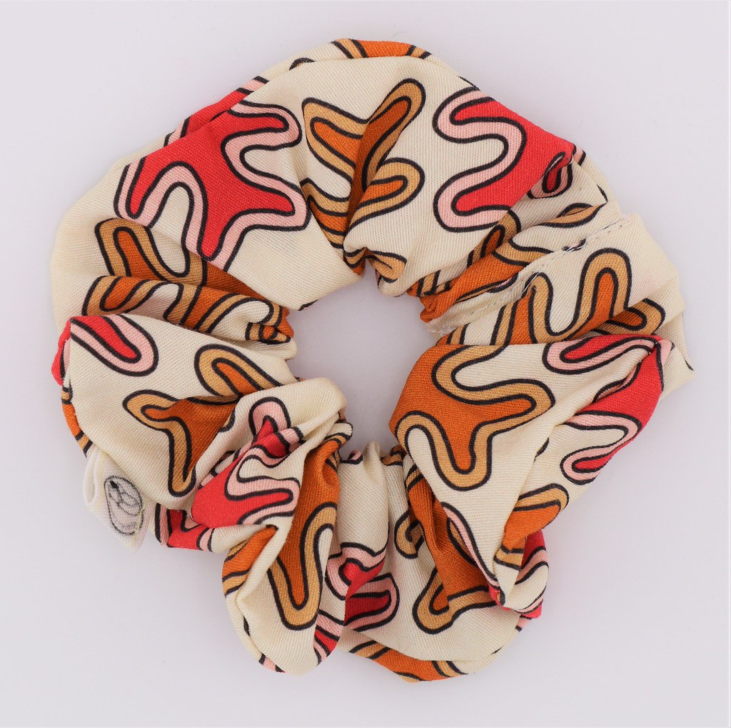 Chouchou pour cheveux mettant de l'avant le tissus ''flèches'' dessiné par Raphaëlle Langevin, inne de Mashteuiatsh.. Conçu pour maintenir les cheveux en place sans les abîmer avec un élastique à cheveux résistant au centre. Confectionné avec soin à Mashteuiatsh..