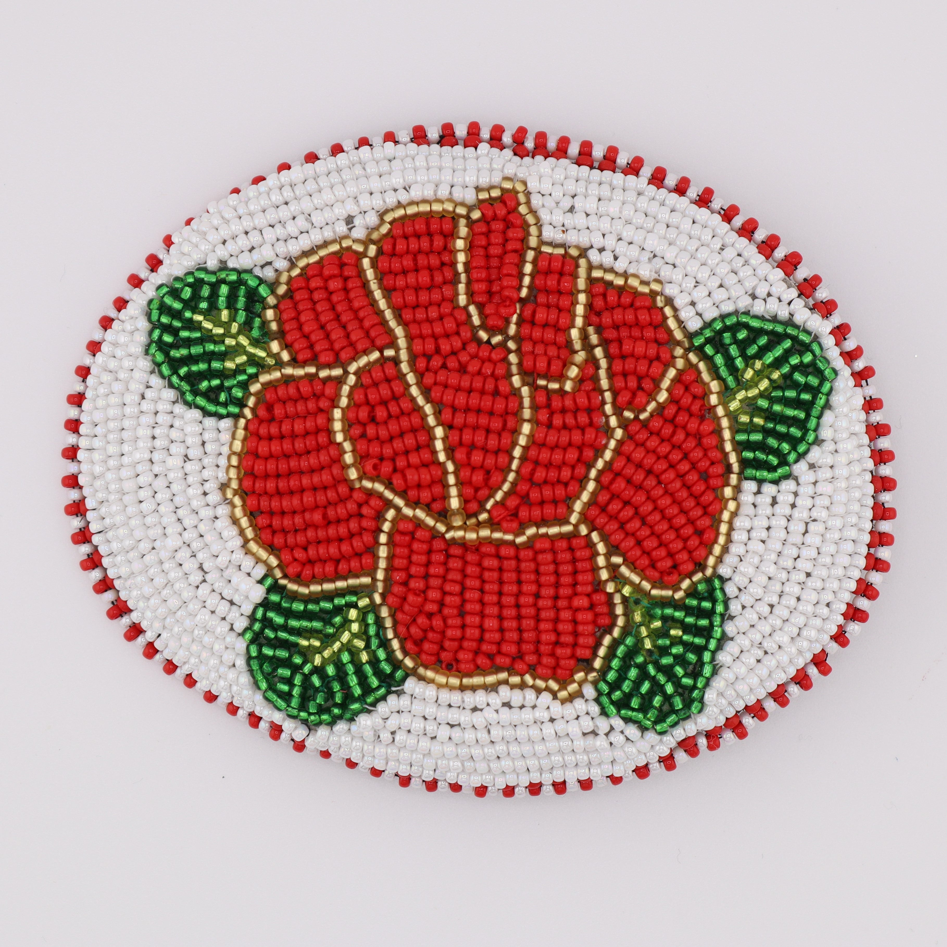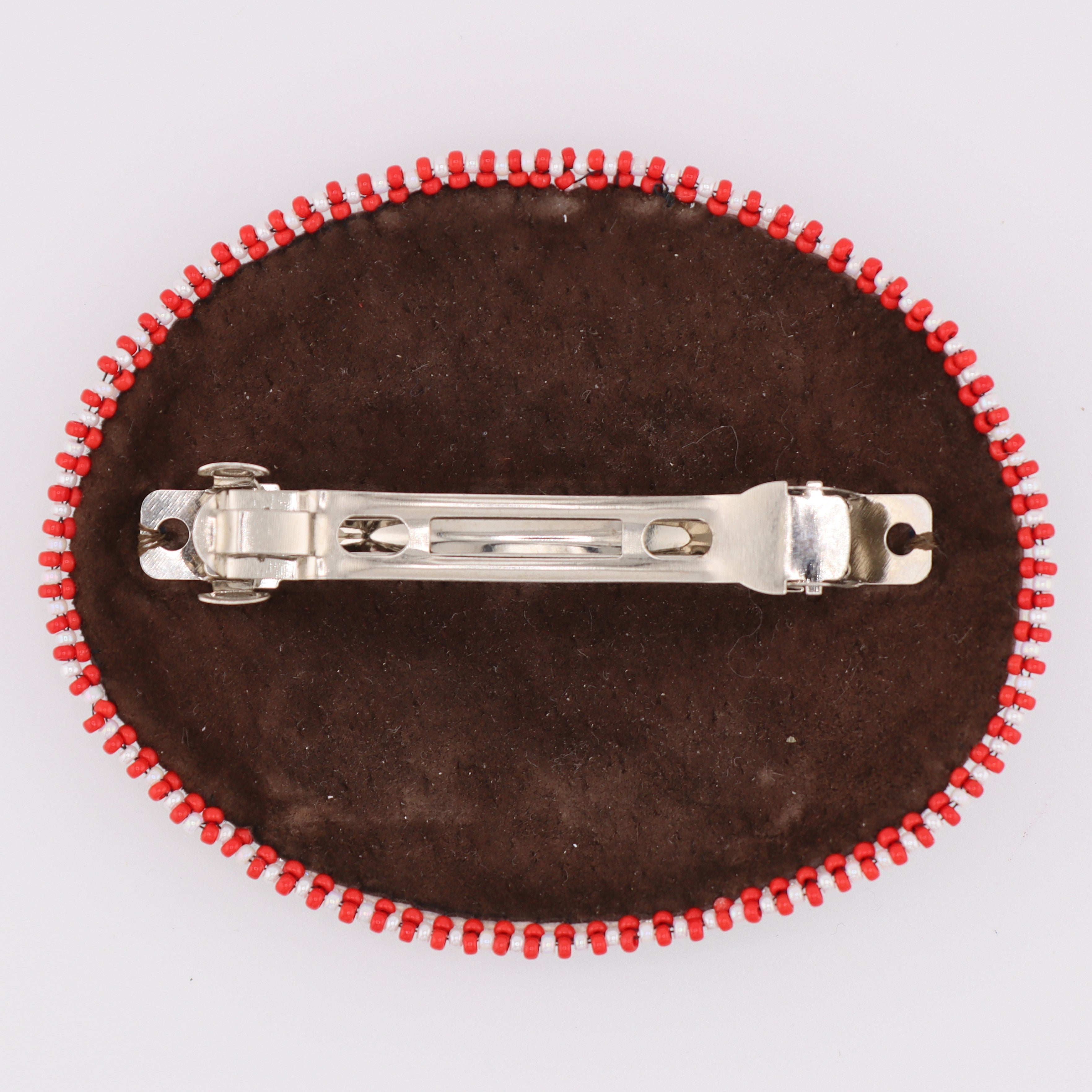 Grande barrette perlée confectionnée avec soin par Patricia Kurtness, Innue de Mashteuiatsh